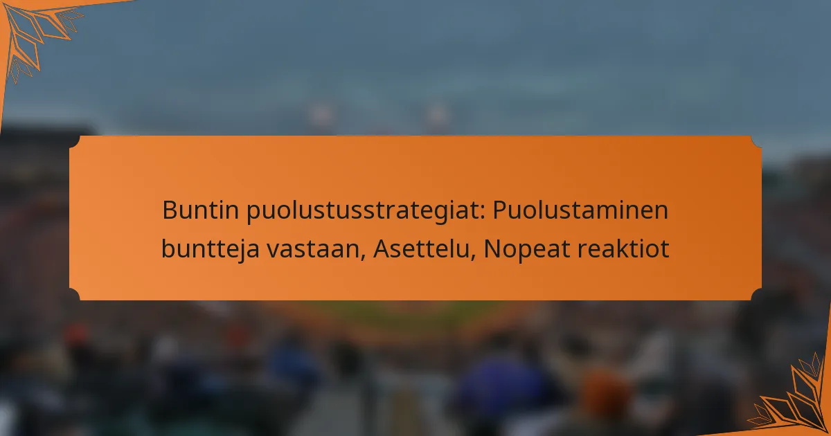 Buntien puolustaminen vaatii strategista lähestymistapaa, joka korostaa oikeaa sijoittumista, nopeita reaktioita ja tehokasta viestintää joukkueen jäsenten kesken. Ennakoimalla lyöjän toimia ja säätämällä taktiikoita sen mukaan joukkueet voivat merkittävästi vähentää buntien onnistumisprosenttia. Pelaajien on hiottava taitojaan harjoitusten ja henkisen valmistautumisen avulla parantaakseen reagointikykyään kriittisissä pelitilanteissa.